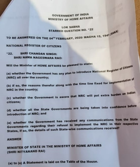 It says "TILL NOW, the government has not taken any decision" Legal foundation of NRIC is Sec 14A of the CitizenshipAct & Citizenship Rules 2003 Govt can anytime notify implementation of NRC NPR will start from 1st April Just a matter of notification to convert NPR into NRChttps://twitter.com/NewsNationTV/status/1224578423978254339 …