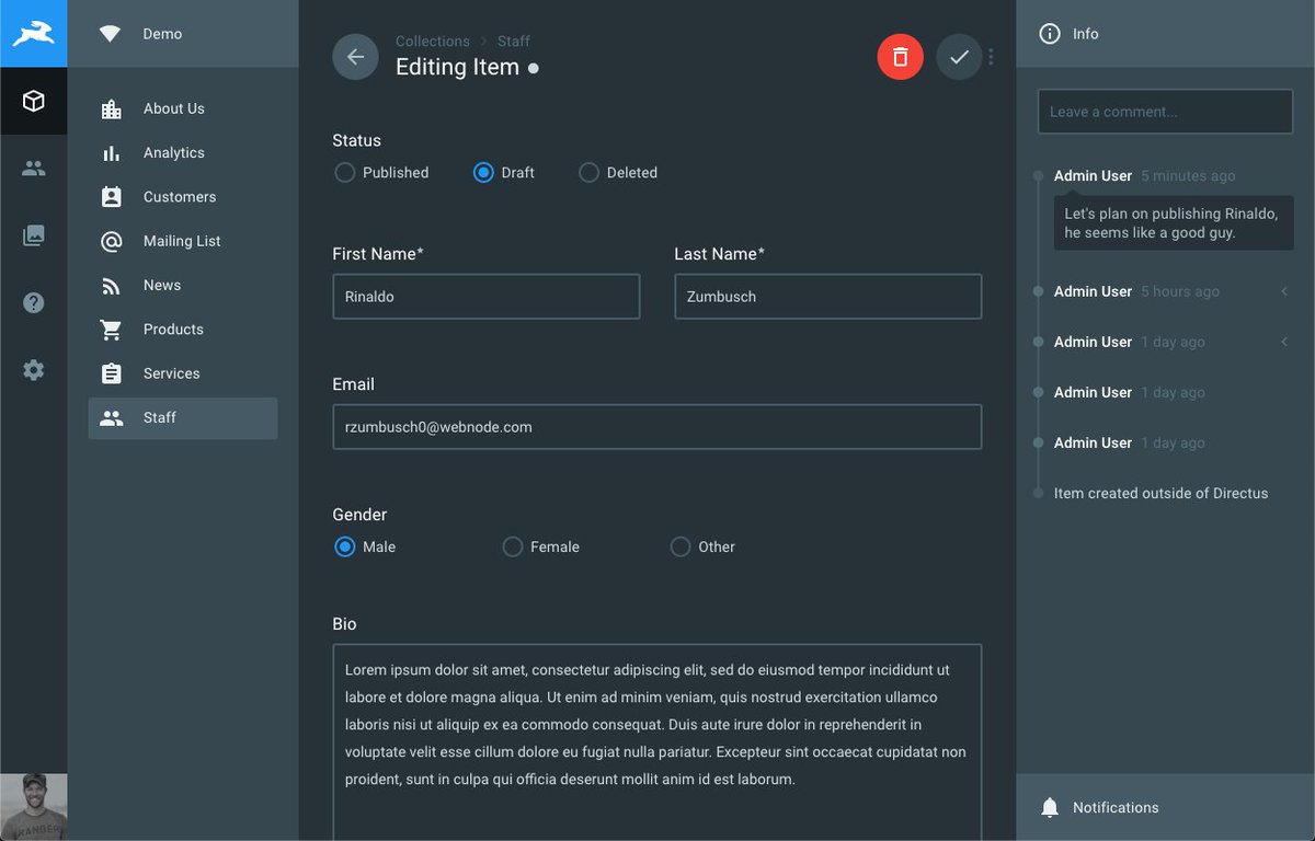 Breaking radio silence: We'd like to announce that the Directus 7.0 Alpha Preview is getting close, so expect a containerized install in the next 1-2 weeks! We're really excited to share this with the community & can't wait for initial feedback.