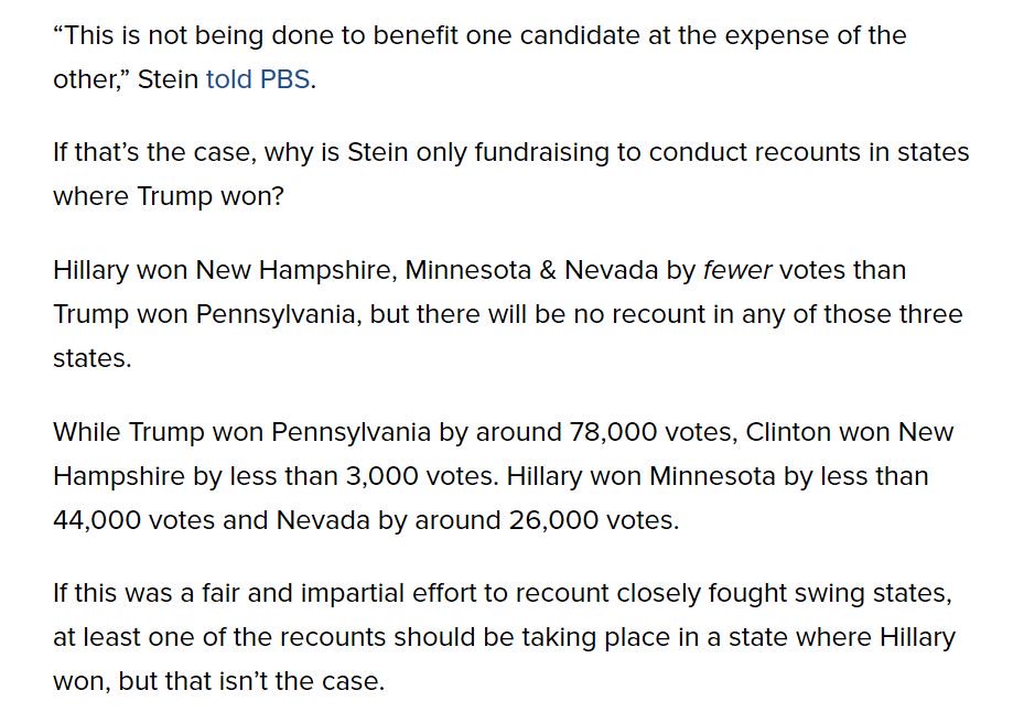 Why is there no recount in states that Hillary won with smaller margins than Trump won PA?