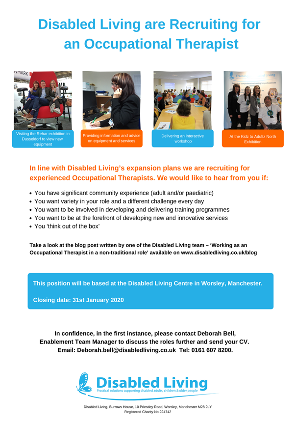 @disabledliving are looking to employ an experienced occupational therapist in the Greater Manchester area. You only have until the 31st of January to get your applications sent in.pic.twitter.com/0yK4g3LIbF
