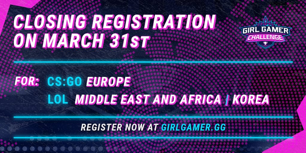 Registrations for Europe (CSGO), Middle east & Africa, and Korea will be closing on March 31st