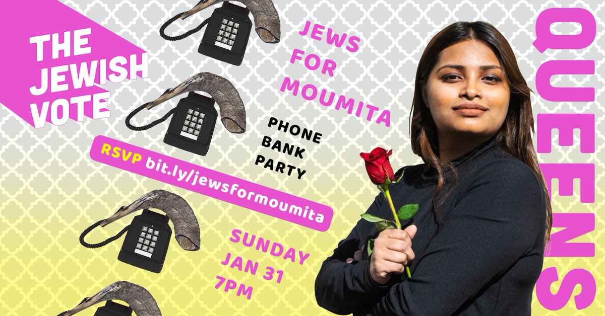 #JewsForMoumita phone bank party is SUNDAY! Let's make progressive history in NYC's first Ranked Choice Voting election in 100 years and elect Moumita Ahmed (@disruptionary) for@NYCCouncil! 7PM ET, RSVPs are filling up fast: http://bit.ly/jewsformoumita pic.twitter.com/stDjegT04a