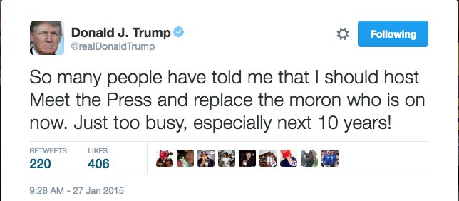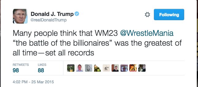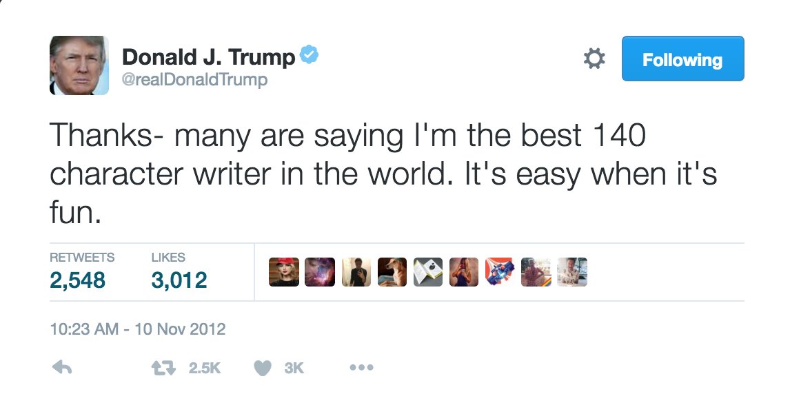 @jhamby Trump, making content great again since 2012 or whatever!Thanks. Twitter will use this to make your timeline better. Undo