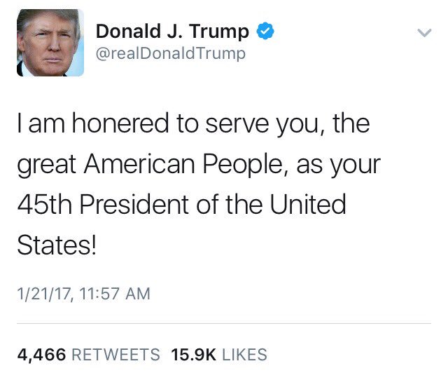 Our new fraudulent, racist, insulting, p***y grabbing president also can't even spell "honored".