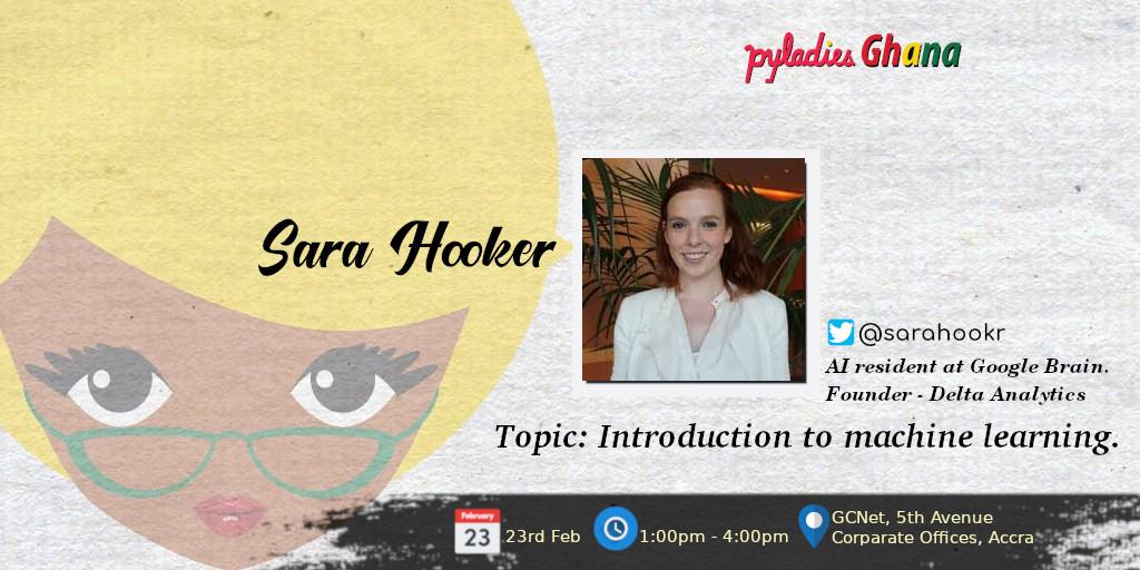 @sarahookr introduce us to Machine Learning. She is an engineer and researcher@Google. Come learn from great minds! Register here >>> http://bit.ly/PL_Meetup0219 .#PyLadiesGhana#WomenWhoCodeInPythonpic.twitter.com/RqMnvlWbTA