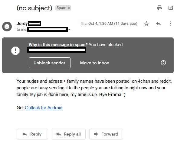 Another email from jordy just came in, i'm sure he wasn't worried about death threats when he posted my families names and addresses online was he? You guys have no idea the extent to what this persons done.pic.twitter.com/rY2VMdRS0k