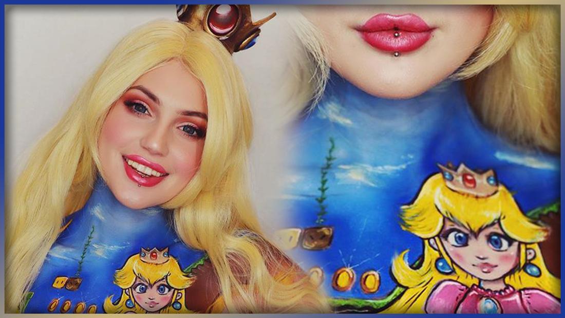 Check out the Princess Peach inspired body paint with commentary here: