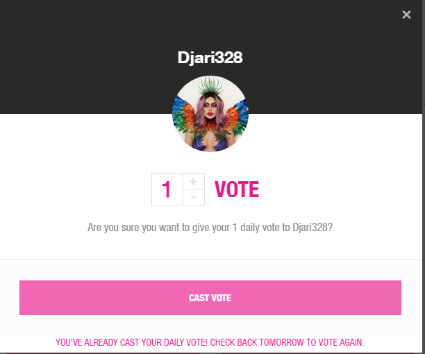 I voted every day for yah!! Really can't wait to see how you end up. You deserve to win x