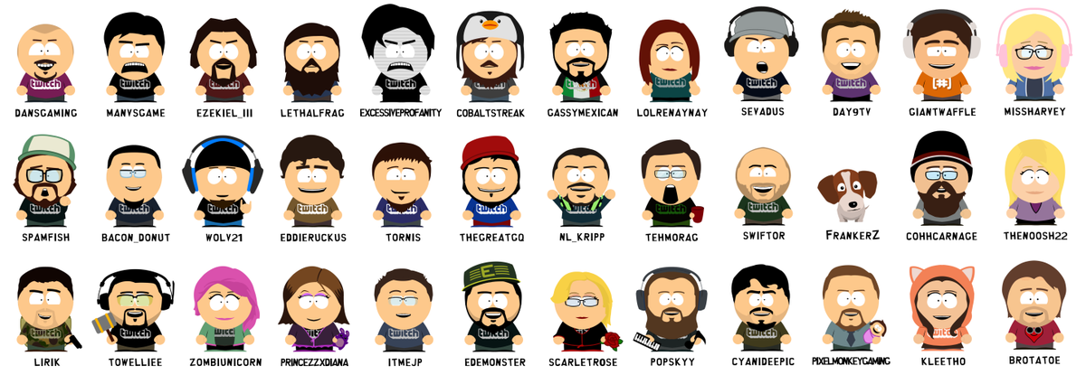 Drew more TwitchSouthPark characters, added @missharvey @TwitchBrotatoe @thenoosh22 :D FullRes http://i.imgur.com/GkQ5sdh.png pic.twitter.com/XFB4LHFTsf