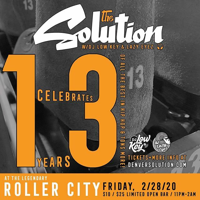 FRIDAY, 2/28 at 11pm -> We've been wanting to throw a party at a roller rink for years and now we're super excited to celebrate 13 years of The Solution at Denver institution Roller City!!! Party residents/hosts