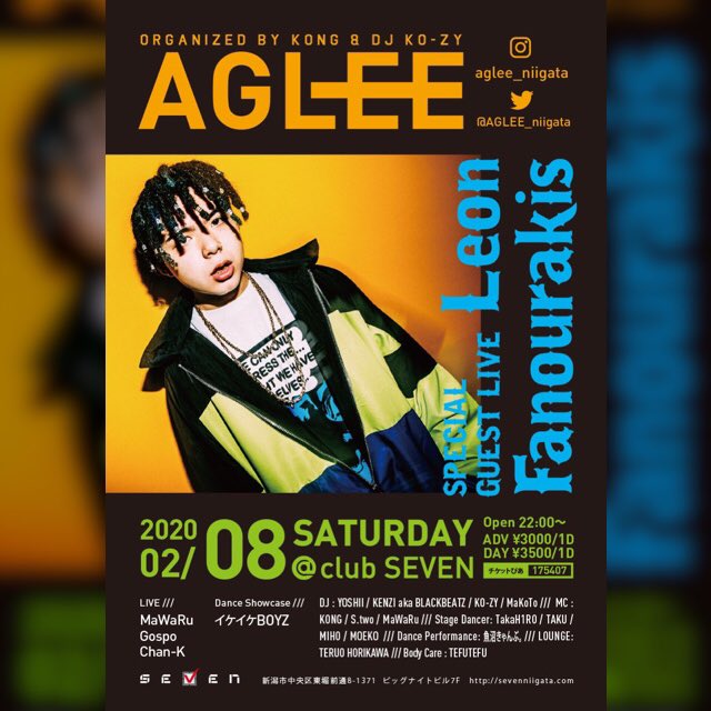 @AGLEE_niigata 【SP GUEST LIVE】 Leon Fanourakis CLUB SEVENにてお待ちしてます