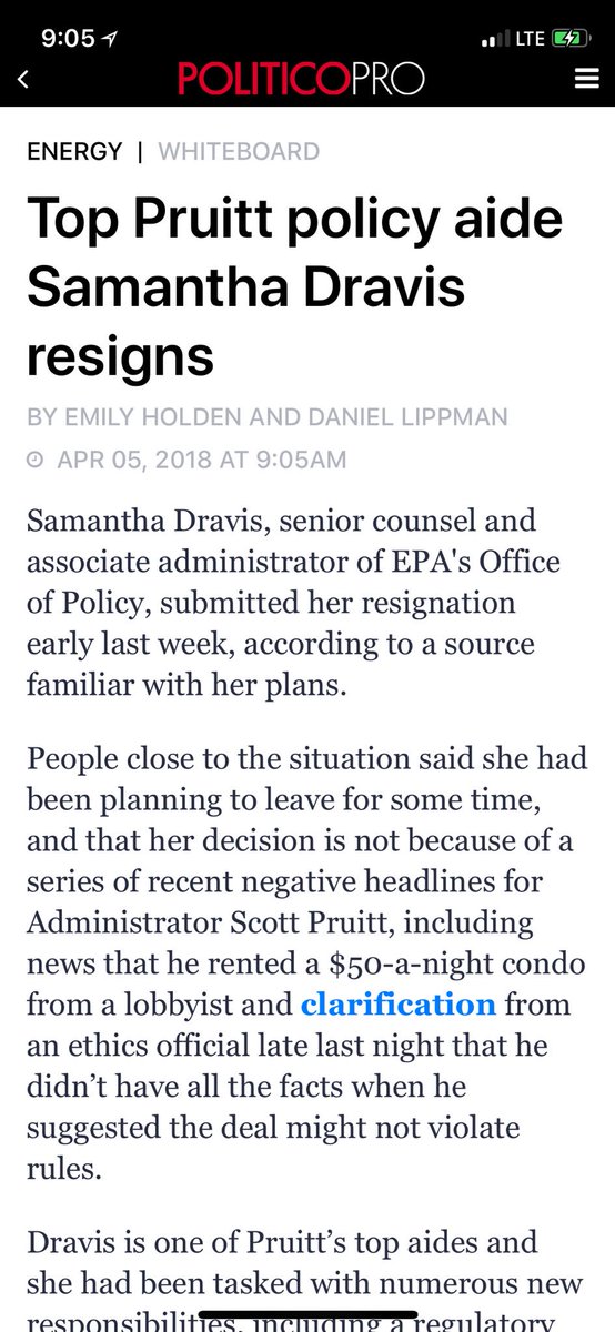 @dlippman with NEWS: Top Pruitt policy aide resigns.pic.twitter.com/dqaomuCP2E