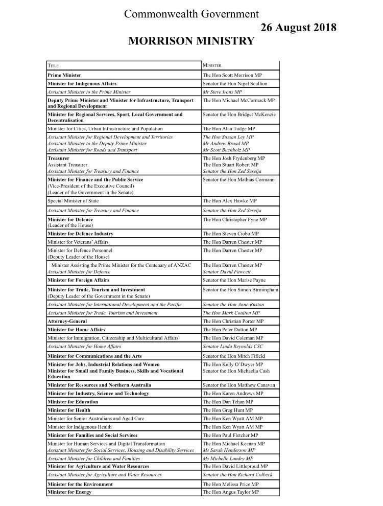 *Promotion for Christopher Pyne. * Demotion for Michaelia Cash. * Barnaby Joyce appointed special envoy for drought. Most senior ministers are sticking around in the same or similar roles. Plenty of new faces in the outer ministry. #auspolpic.twitter.com/QkUW9dBRkn
