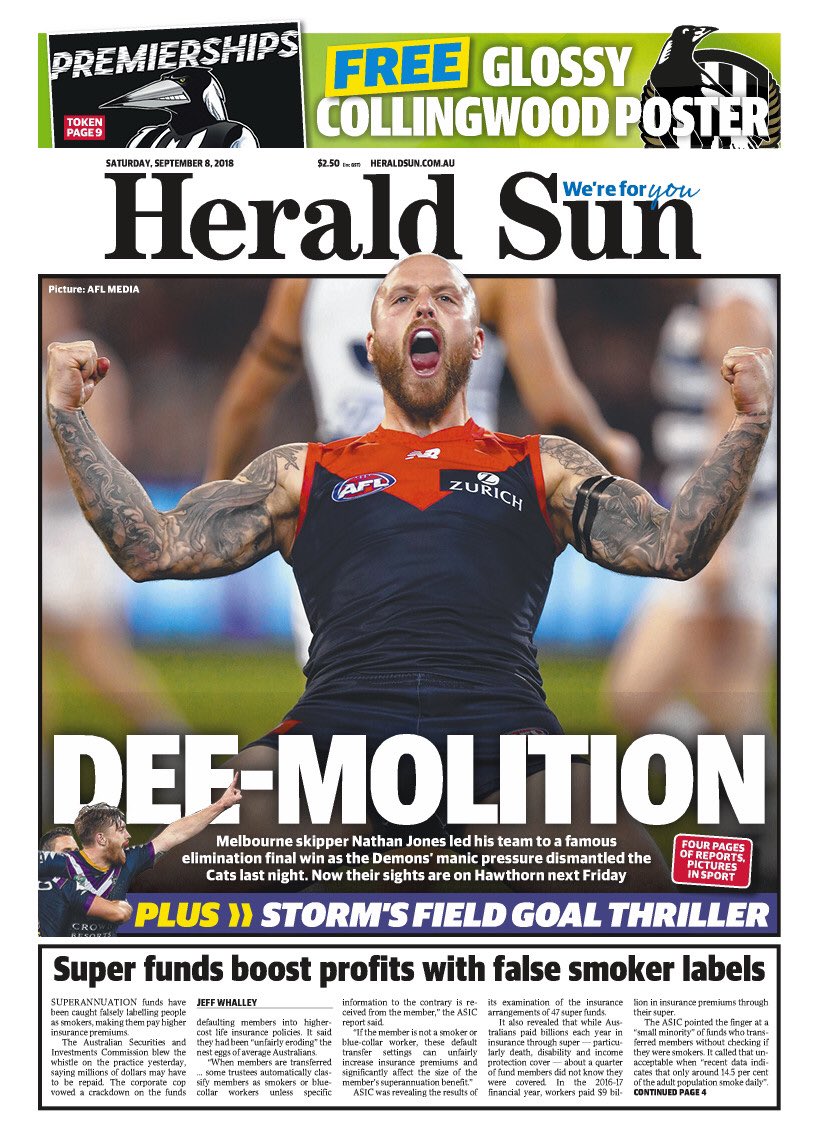 Tomorrow's @theheraldsun front page tonight #AFLCatsDees @superfooty @EwinHannan pic.twitter.com/MAT9AKlJUo