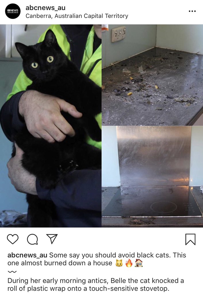 STORY OF THE DAY: "Firefighters soon discovered the resident cat knocked a roll of plastic wrap onto the touch-sensitive stove - sending the kitchen up in smoke - and are urging residents to lock their stovetop sensors and switches"