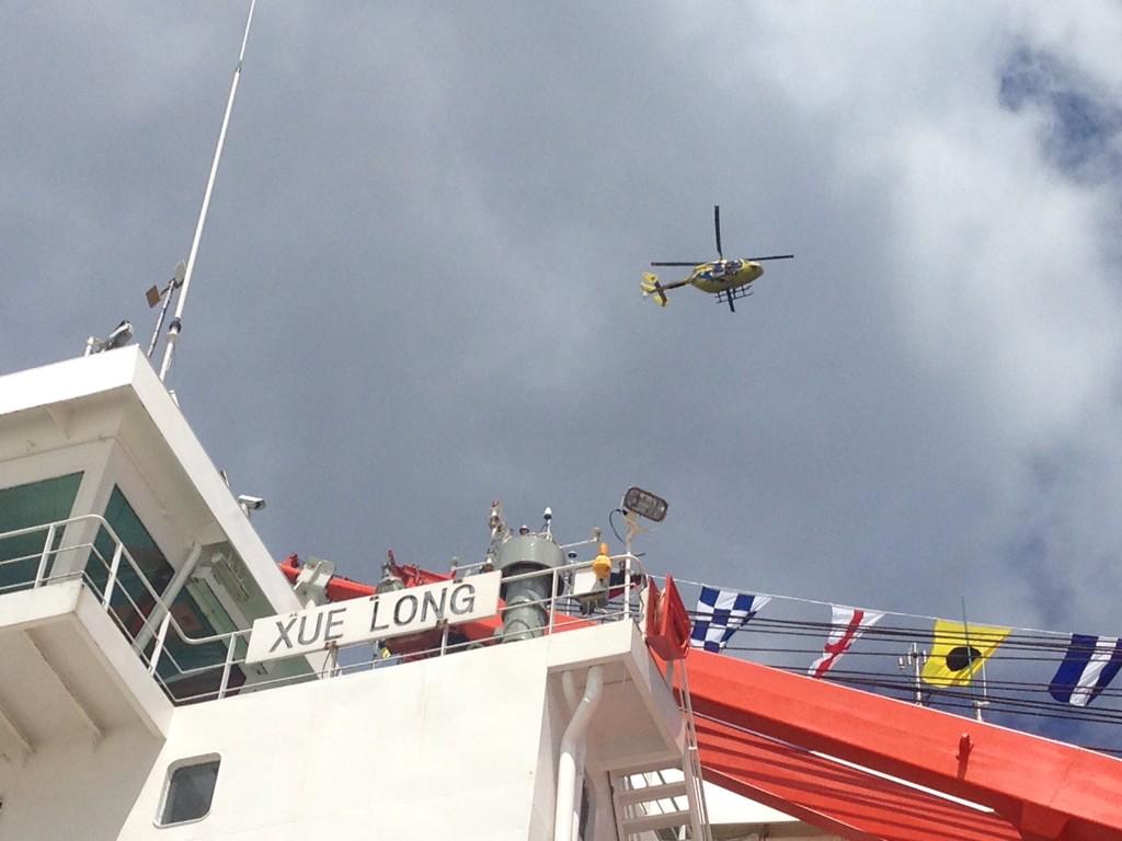 Chopper in the sky over the mighty Xue Long. #TasXipic.twitter.com/zVXBsk36Ou