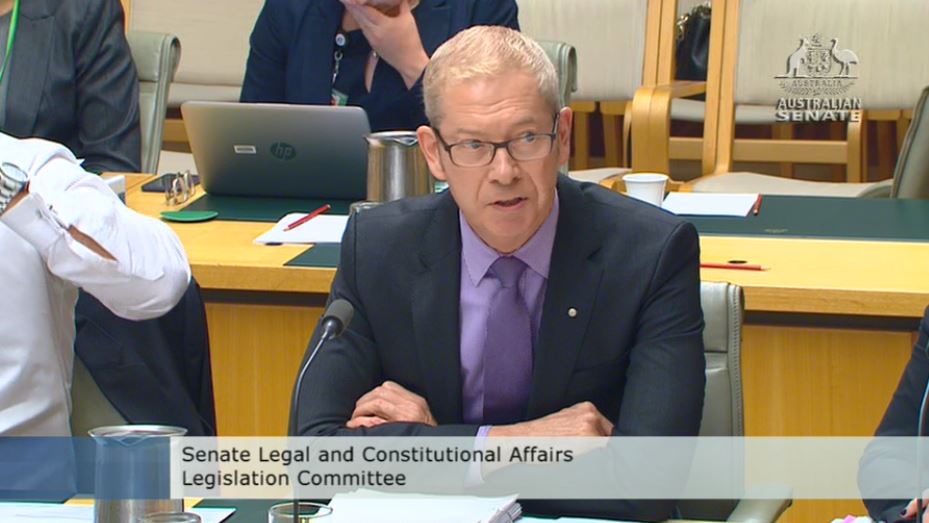 Timothy Pilgrim, Australia's information and privacy commissioner, pays tribute to staff coping with ever-increasing workloads as he fronts his last ever #estimates hearing. Pilgrim will hang up the boots next month after 34 years in the public service. #auspolpic.twitter.com/spIh52u6vQ
