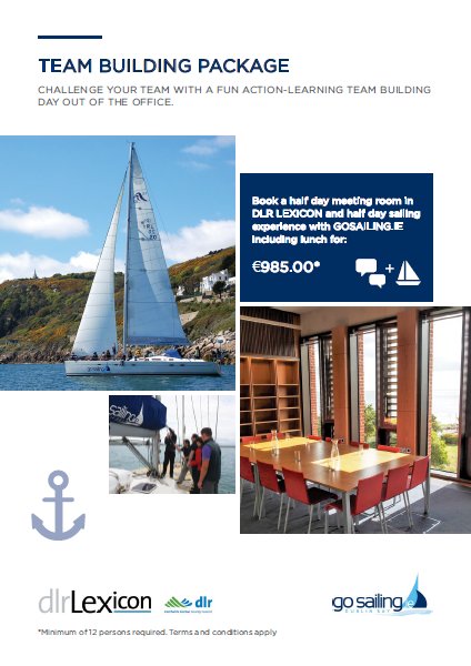 @GosailingDublin for their sailing season this year! Book a half day meeting room and an afternoon of sailing with lunch on board for your team for €985.00 (min 12 ppl). For more info email Lexiconfacilities@dlrcoco.ie.pic.twitter.com/ojCrxrAfdL