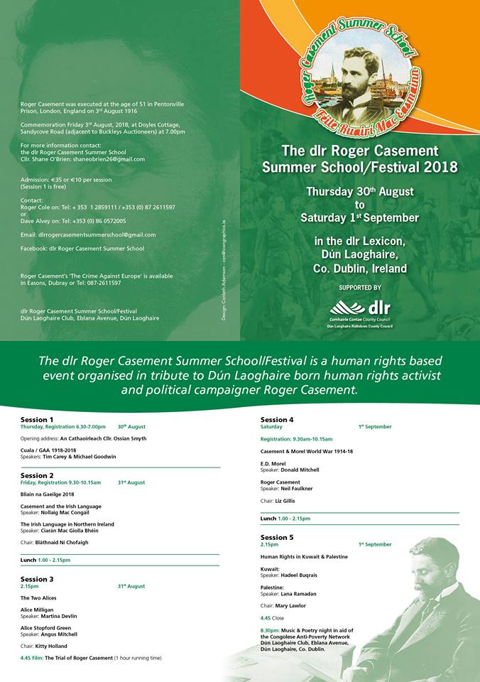 The dlr Roger Casement Summer School/Festival is a human rights based event organised in tribute to Dún Laoghaire born human rights activist and politcal campaigner Roger Casement. On in