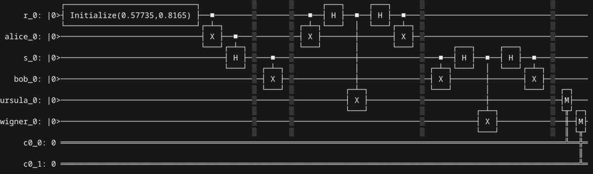 This seems clear when you look at the circuit visually. You can simplify the circuit so that Bob does nothing. Since he makes no observation, how could one then infer anything based on his observation? Does anyone else see this in the same way?pic.twitter.com/R0OoRVj0Fx