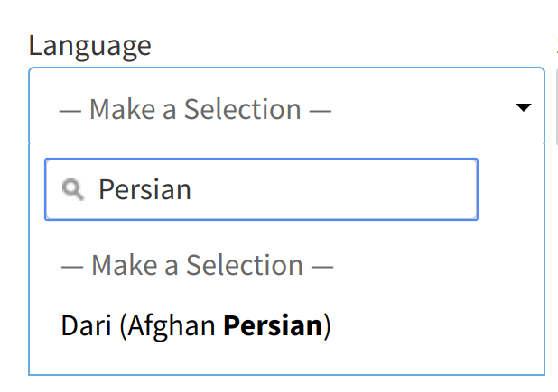 This is a specific pet peeve of mine but Persian is referred to as "Farsi", whereas Dari does appear if you type "Persian". https://twitter.com/dlyongemallo/status/1216256842831147008 …pic.twitter.com/QOB8kkQebC