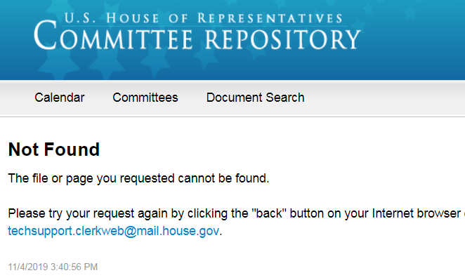 House Intel's link to the full Yovanovitch testimony appears to be dead now. https://docs.house.gov/meetings/IG/IG00/CPRT-116-IG00-D003.pdf … Down for everyone or just me?pic.twitter.com/FHrJLG97EL