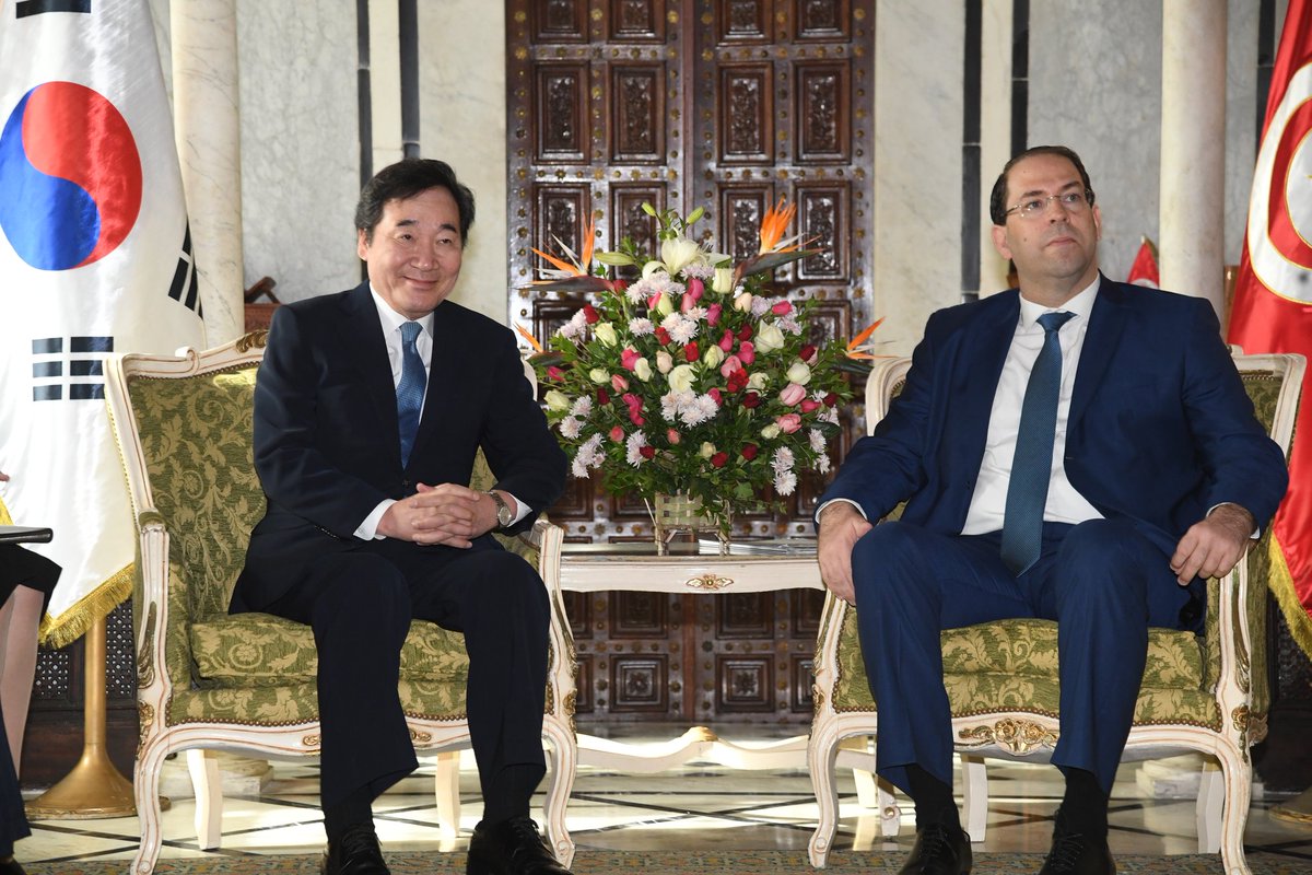 한국-튀니지 총리회담. 유세프 샤헤드 총리님과 ICT, 과학기술교육, 투자교역, 교통물류, 농업, 안보 등 광범한 협력방안을 논의. 튀니지는 우리의 전자조달행정, 토지정보 디지털화, 국민신문고 등을 도입해 행정의 투명성과 효율을 높이고 있습니다.pic.twitter.com/3Jzdc20nJd