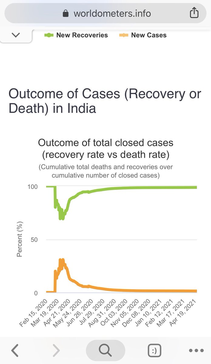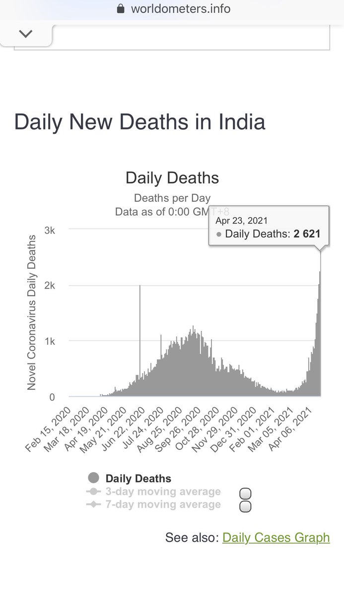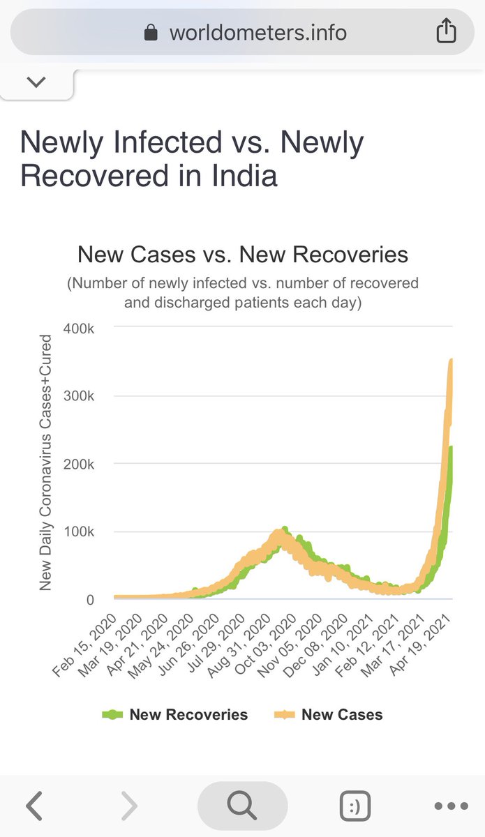 Alarmingly—since this person says they’re an MD—they specifically chose the least alarming-looking graph when there are graphs that give a much more concerning overview *on the very same page* of Worldometers. You can check the link in this tweet:https://twitter.com/lissoderberg/status/1386416714162728964?s=21 …