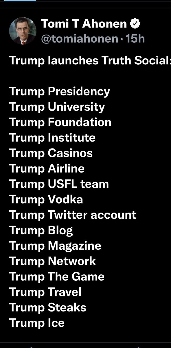 بعد حظره من حساباته في السوشيل ميديا منذ مطلع العام وفقدانه حوالي 100 مليون متابع وقاعدته المحافظين.أطلق منصته في السوشيل ميديا #تروث_سوشيل#TruthSocial.لفك عقدة حظره من جميع حساباته بسبب تحريضه على العنف واقتحام مبنى الكونغرس في 6-1-2021. سيكون مصيرها الفشل كمشاريعه الفاشلة