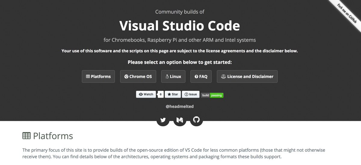 @code on your Chromebook? (Un)official community ARM builds are now available! https://code.headmelted.com/ pic.twitter.com/ItGJp94clk