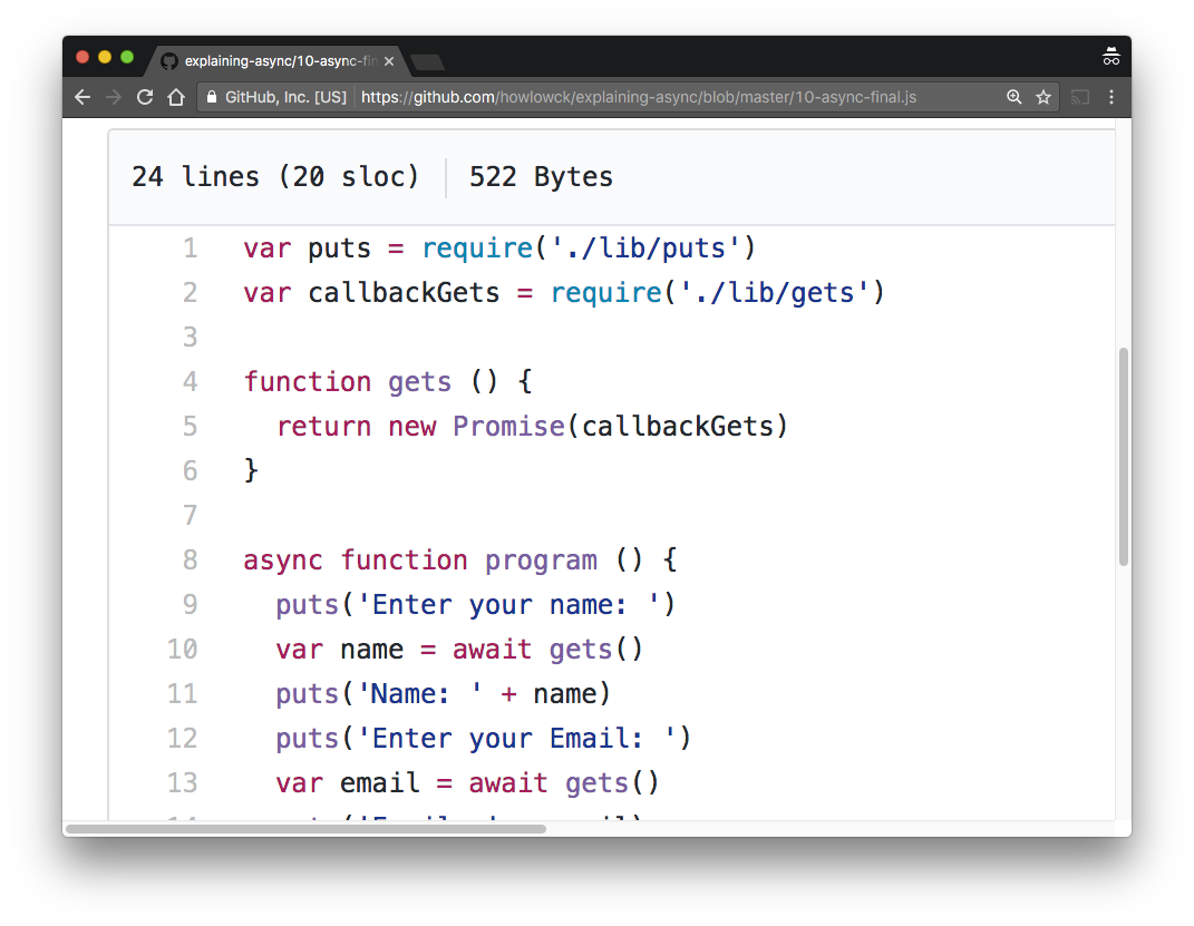 Explaining Async/Await: https://github.com/howlowck/explaining-async … Simple and straight-to-the-point notes