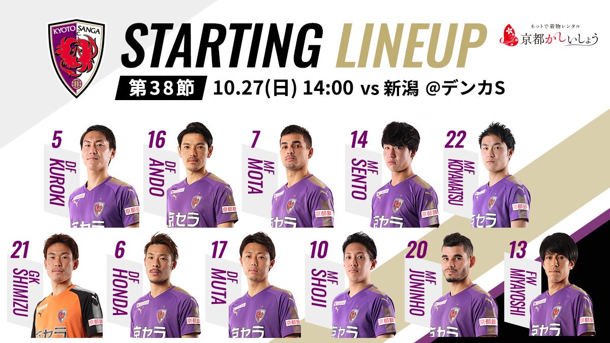 モッタ選手、中坂選手の初スタメン! ガラッと変わったメンバーでどんな闘いを見せてもらえるのか楽しみ! 昇格に向けての勝ち点3を!!! 残り6試合の勢いになるまず1勝目をお願いします!https://twitter.com/sangafc/status/1185394360281468929 …