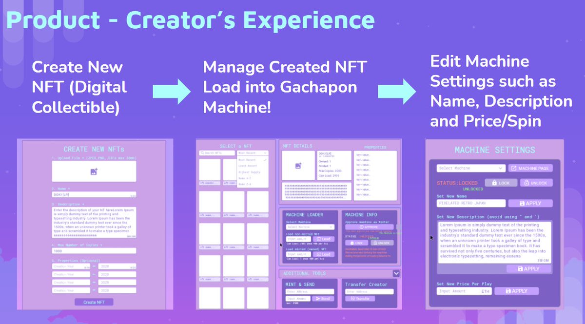 7/ DeGacha is a purely decentralized application built using Ethereum smart contracts, #NFT, and @IPFS for storage. For investors, DeGacha is also community owned. We have yield-farming pools which distributes commissions generated by our machines.pic.twitter.com/v7S8dgOBwy