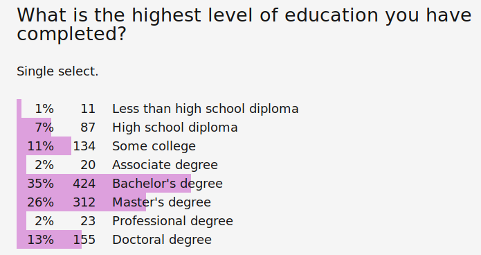 13% of Haskell developers that participated in the poll have a Doctoral degree.pic.twitter.com/1YEUC6l7n4