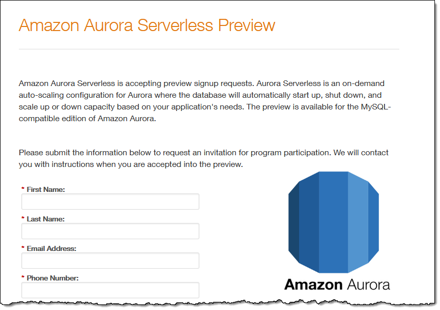 Amazon Aurora Serverless Preview- Sign Up Today at http://bit.ly/2zBNvRY
