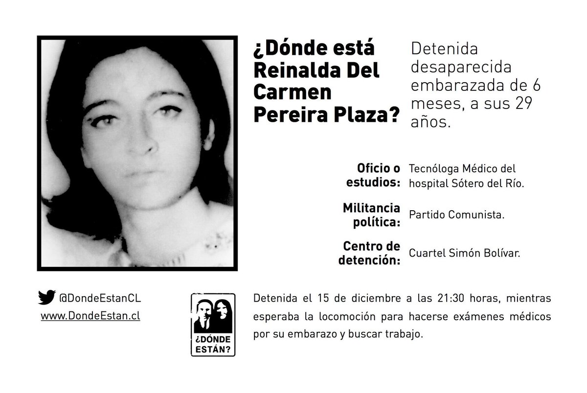 ¿Dónde está Reinalda Del Carmen Pereira Plaza? Detenida desaparecida el 15 de diciembre de 1976, a sus 29 años. Embarazada de 6 meses.pic.twitter.com/Vn9Uvlh2Xk