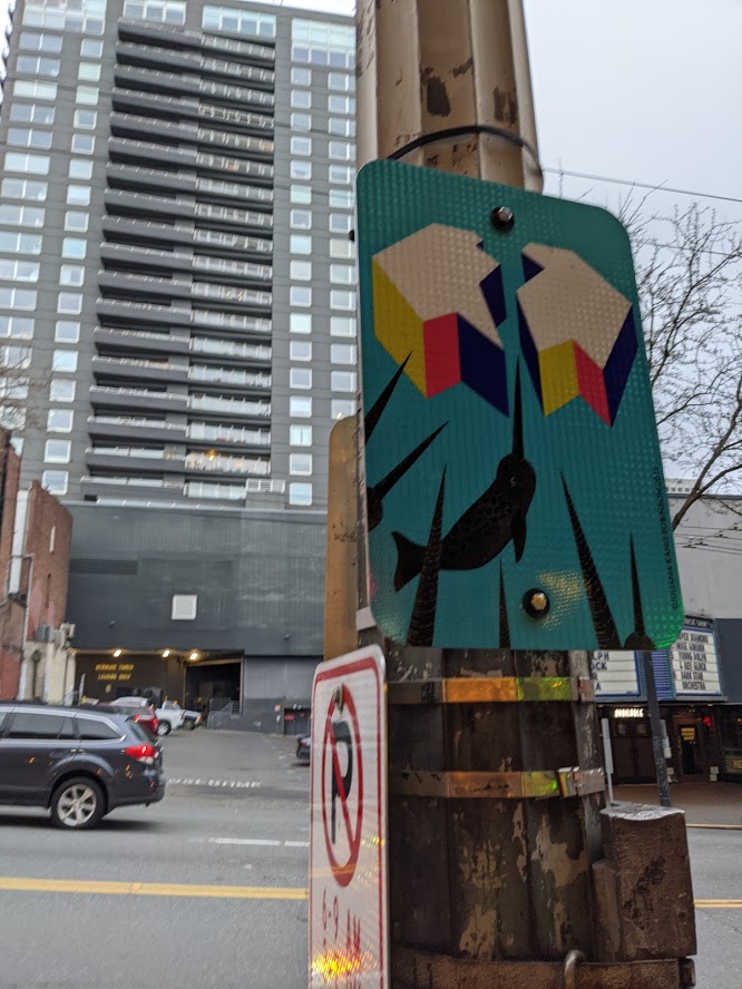 Quick and low cost ways to provide interests and fun in our communities? Our amazing artists can connect people together with their delightful work. These are street signs and marking installed last year at all way walk at 1st and University.pic.twitter.com/u45C6VYoSi