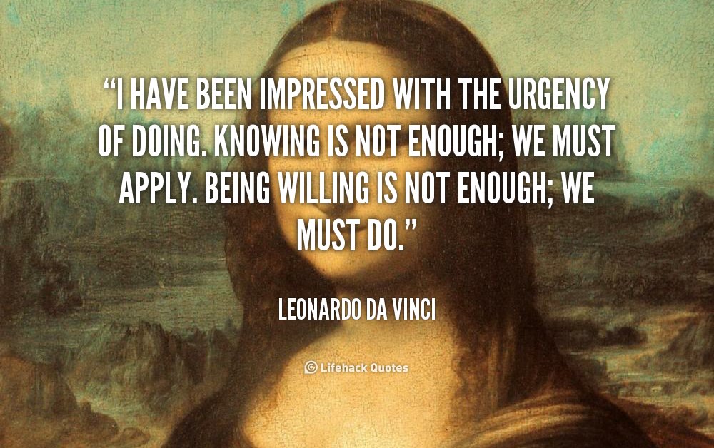 #Knowing is not enough; we must apply. Being willing is not enough; we must do. - Da Vinci -