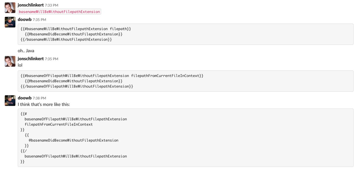 #javascript with@doowb on slack, and somehow we ended discussing what handlebars would look like if#typescript and#React existed when it was created. This is the "extname" helper:pic.twitter.com/WFx2kwCO6E
