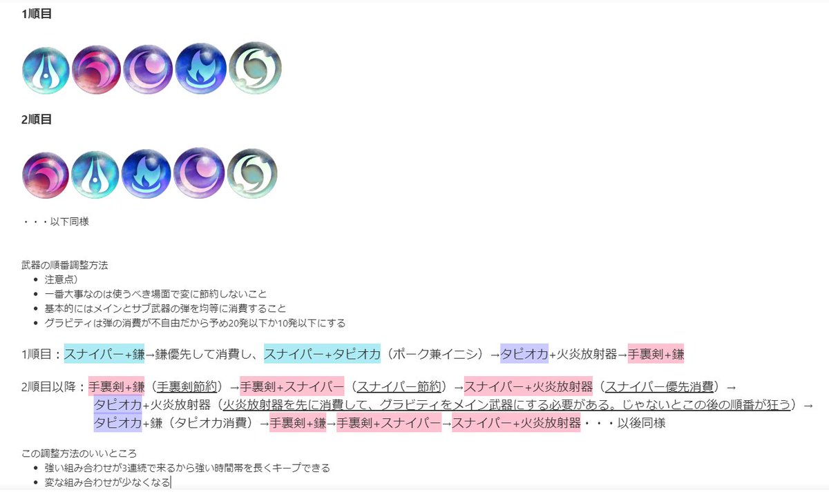 【アフェリオスの武器の順番調整方法】 注意)非常に読んでると頭が痛くなる内容です もっと細かい部分は配信で解説したりします この調整方法のいいところ ・強い組み合わせが3連続で来るから強い時間帯を長くキープできる ・変な組み合わせが少なくなるpic.twitter.com/YKm4F4JYMt