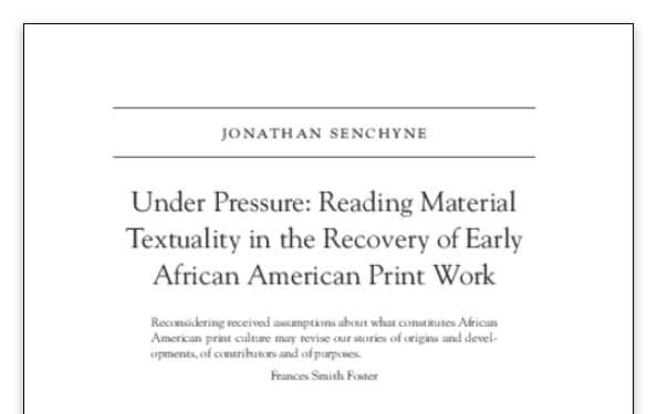 I'm super proud to see this article finally out! It's abt enslaved printers, Primus Fowle in particular, and the challenge of doing forms of close reading on the material texts they produced. It's the first work from my next book project to be published! https://muse.jhu.edu/article/734588