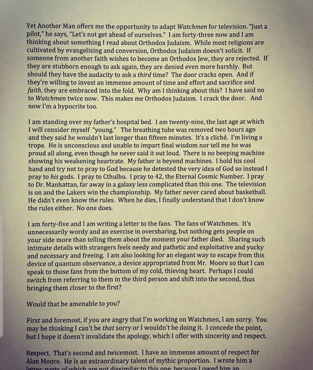 The fact that he wrote part of this in the style of Dr. Manhattan is hardcore and chilling all at once.