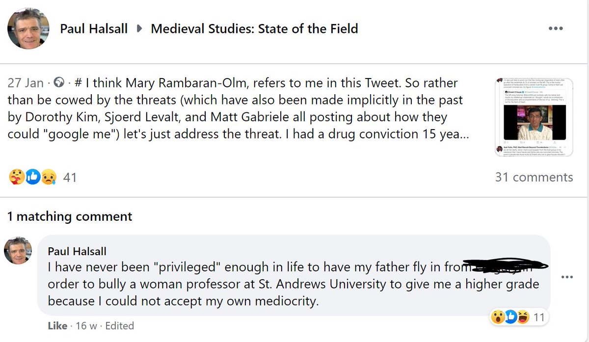 He has been harassing us for years. But yet every medieval conference has allowed him to show up when he is fine w/ supporting violence & known far-right figures. @IMC_Leeds let’s him show up regularly. He’s banned from the US b/c he was arrested for selling cocaine. 1/https://twitter.com/ISASaxonists/status/1396632420473053186 …