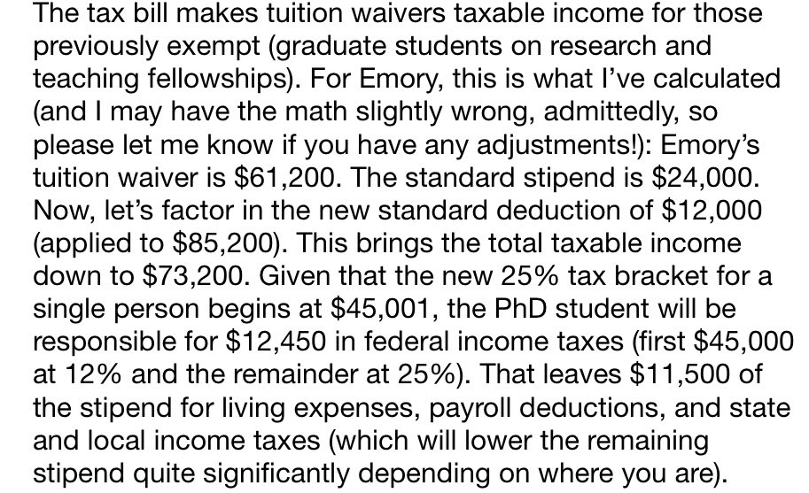 Graduate students on fellowships the GOP tax bill will make tuition waivers taxable, meaning you will owe a huge federal tax bill. pic.twitter.com/LDP2SRaVc8
