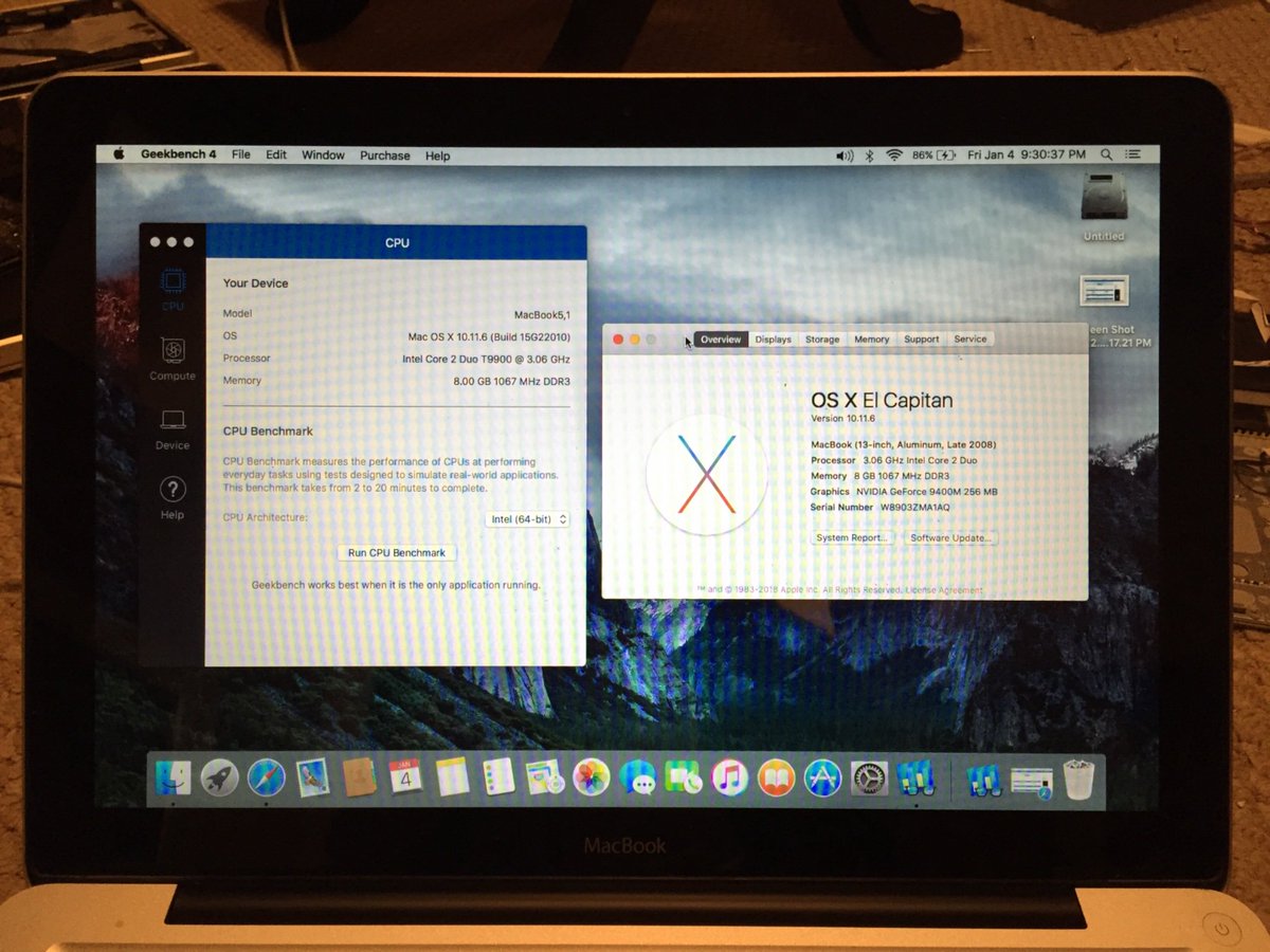 Just finished upgrading the CPU on this Late-2008 Aluminum Unibody MacBook! This machine originally had a 2.0 GHz Core 2 Duo P7350, and now has the best CPU it can support, a 3.06 GHz Core 2 Duo T9900! I made a video of the process here: https://youtu.be/mzloRG-On7Y pic.twitter.com/VdhmiIih5H