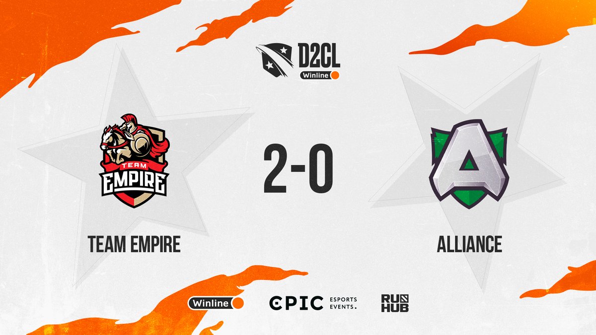 @team_empire vs@theAllianceGG, bo3 (best of 3) Комментируют:@crystalmaytv и@Inmateoo Прямой эфир: http://twitch.tv/winline_d2cl#D2CL#Dota2#RuHubpic.twitter.com/aavuPhdQqp