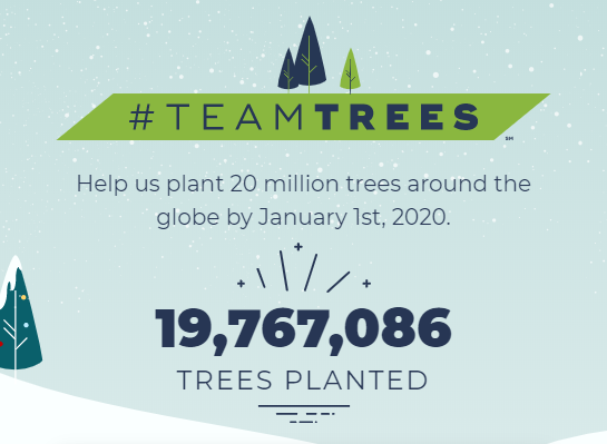 #TeamTrees is so close to hitting 20 million trees!pic.twitter.com/YTTzeMSDmi
