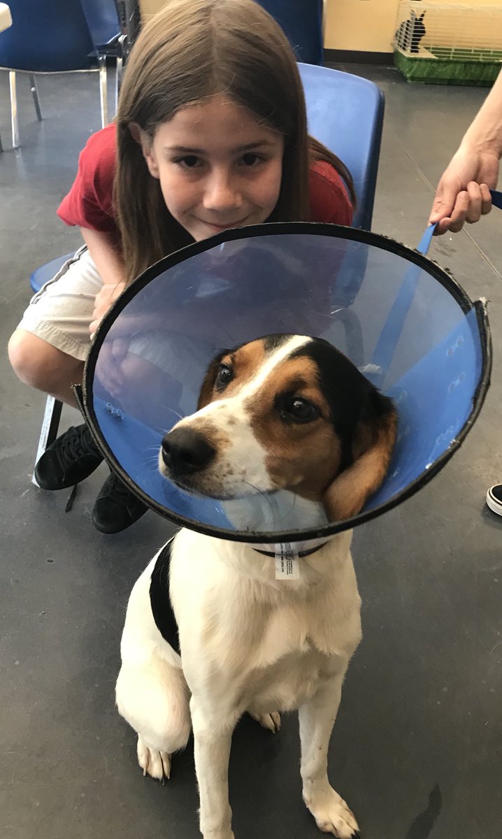 @CedarBendHS who needs a home. She was just spayed and has a cone to stop her from licking. She is sweet, loves people and is good with other dogs. She knows how to sit and hopes you will give her a rawhide for doing it.pic.twitter.com/Z6KM4ISkwn