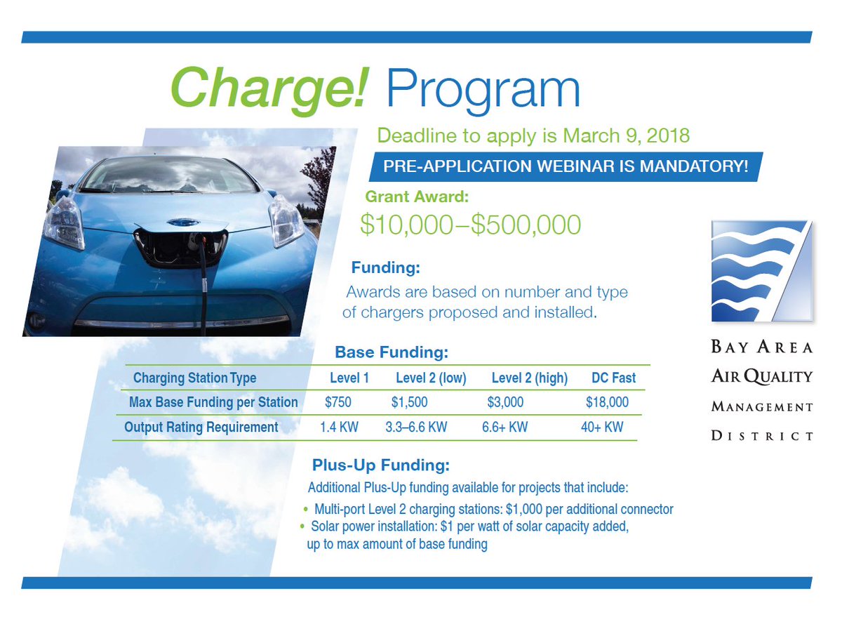 Is your business, non-profit or public agency looking to install new public EV charging stations? Apply for funding via the Air District’s Charge! grant program before 4 PM on 3/9. Pre-application webinar attendance mandatory, register and apply: http://baaqmd.gov/charge pic.twitter.com/GOz9Y8fJ7S