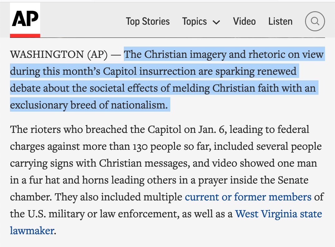 I watched nutcases in black try to torch a federal courthouse in 2020. They took over part of Seattle + killed people. They burned small businesses to the ground + looted with glee. Refrain? "Mostly peaceful." Jan. 6 happens + "Christianity on display" terrifies the media.